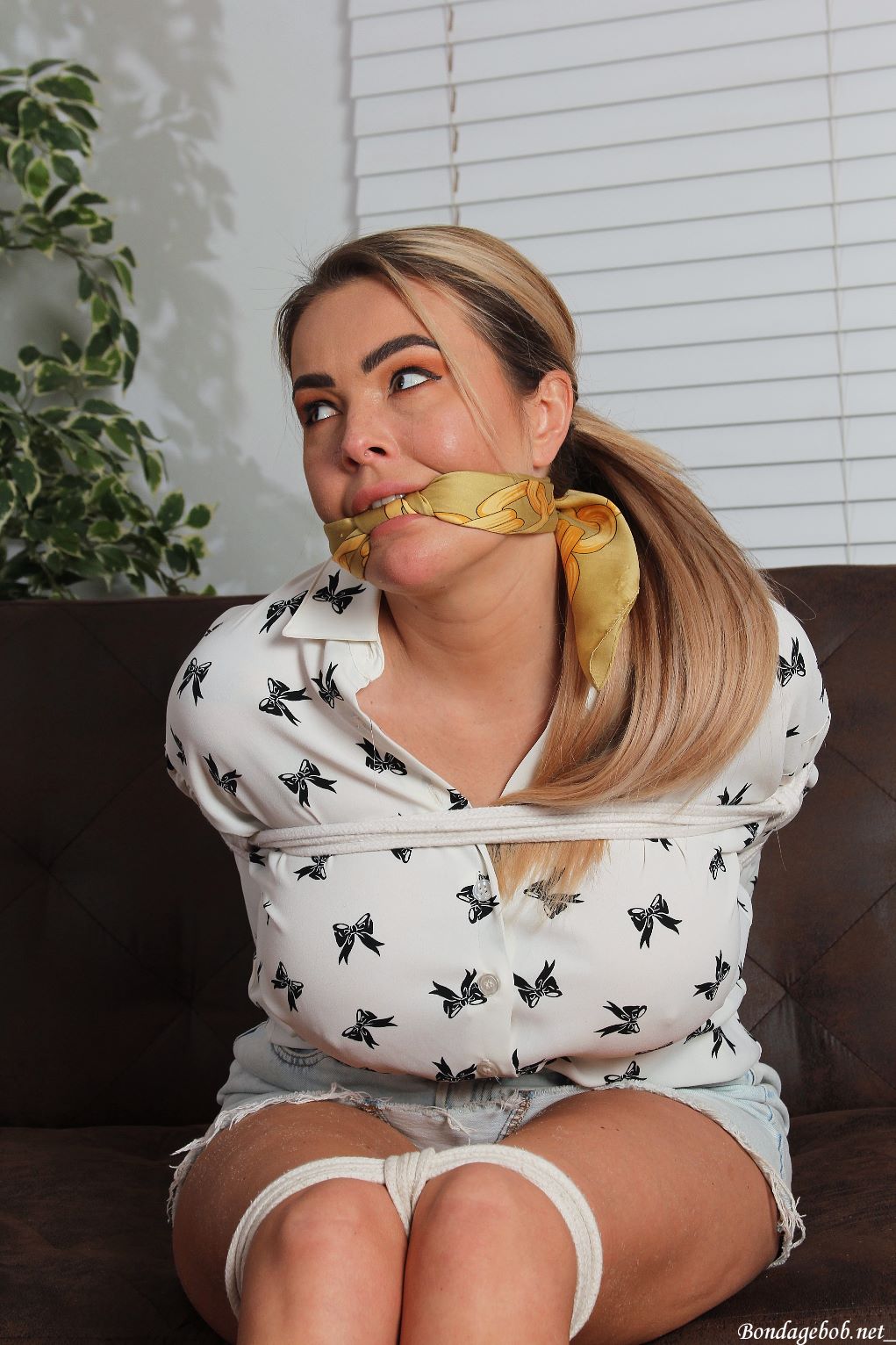 kate continued to bind Charley adding more and more rope around her chest, pinning her arms.